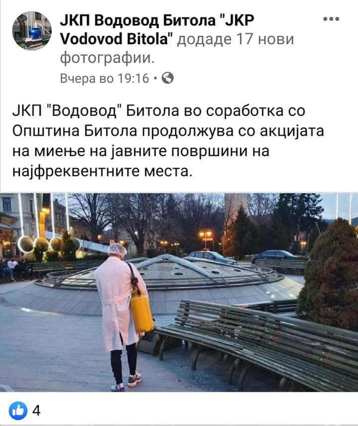 После објавеното видео на Ритко Мдфк , ЈКП Водовод Битола, сакајќи да се пофалат дека ги дезинфицираат и чистат улиците и јавните површини, ставиле слика токму од Ритко, како лажно “дезинфицира”.