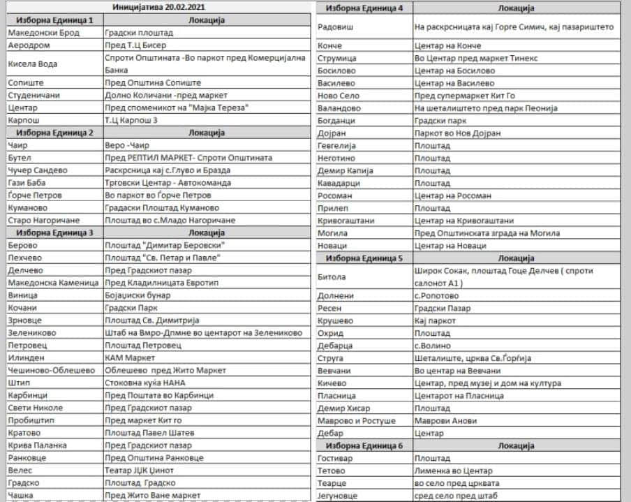 Потписи ке се собираат и во други градови, локациите се објавени на следнатс фотографија.