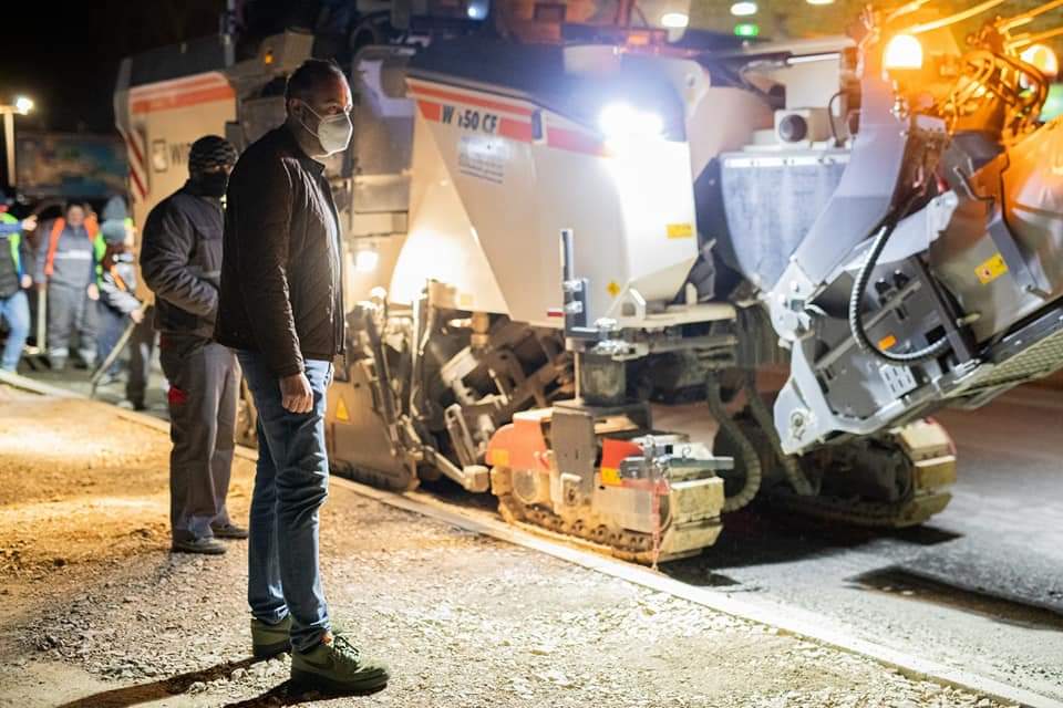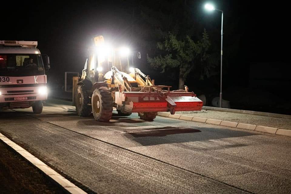 👍Интензивна градежна динамика на улицата „15-ти Корпус“ на потегот пред влезот во селото Лескоец. Поради големата фреквенција на сообраќај, стручните екипи работат и во текот на вечерните часови.