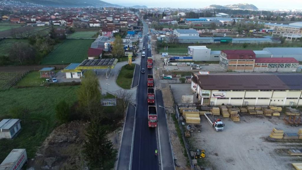 🆕 Рано утринава, уште за време на полицискиот час започна поставувањето на вториот асфалтен слој на коловозот, на потегот од крстосницата со пристапниот пат кон село Велгошти до влезот во село Лескоец.