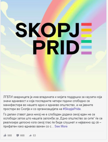 -Го делам ставот дека никој не е слободен додека секој еден не се ослободи затоа што нашата заложба за „Едно општество за сите“ ќе се реализира целосно кога секој глас ќе биде слушнат и најважно од сѐ – прифатен како еднакво важен со сите други. Манифестираме европски и солидарни манири среде Балкан. Ова е нашиот нов Балкан, слободен, човечки и разновиден.Повикувам здружно да продолжиме да работиме на рушење на ѕидовите и креирање нов и подобар свет за сите нас, напиша Заев на Фејсбук.
