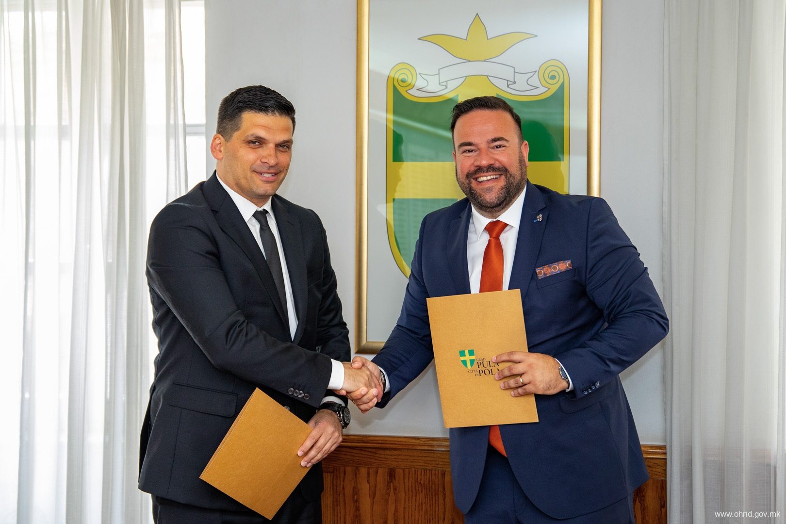 Градоначалникот на Општина Охрид, Кирил Пецаков и градоначалникот на хрватскиот град Пула, Филип Зоричиќ денеска во Пула потпишаа Меморандум за пријателство и соработка.