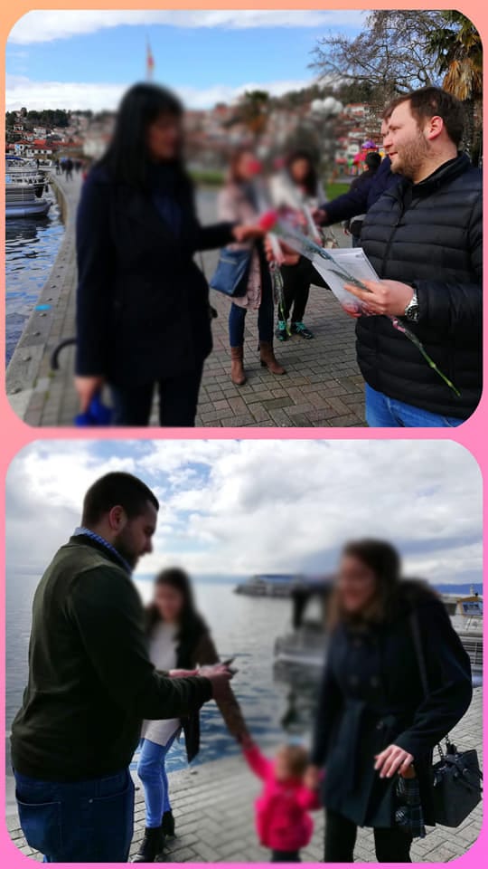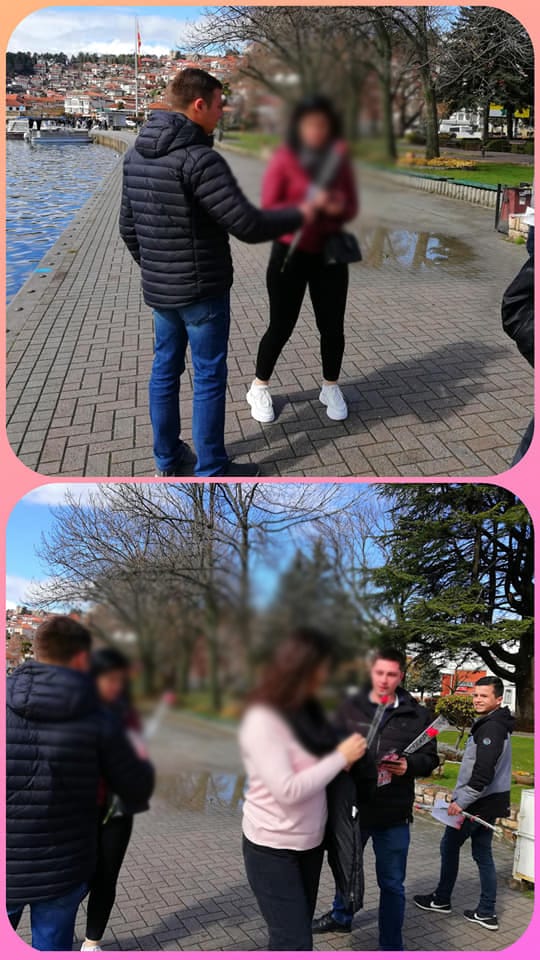 Со ружи и каранфили СДММ Охрид и Унијата на Млади ВМРО – ДПМНЕ Охрид , тргнаа во лов на женските гласови , цвеќиња се делеја по Охридските улици , плоштадот и градскиот пазар.