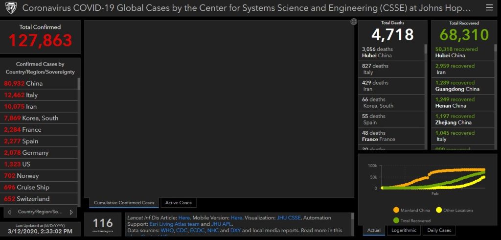Интерактивната мапа, која го следи Коронавирусoт во скоро реално време, собира осомничени и потврдени податоци за случајот од повеќе владини извори.