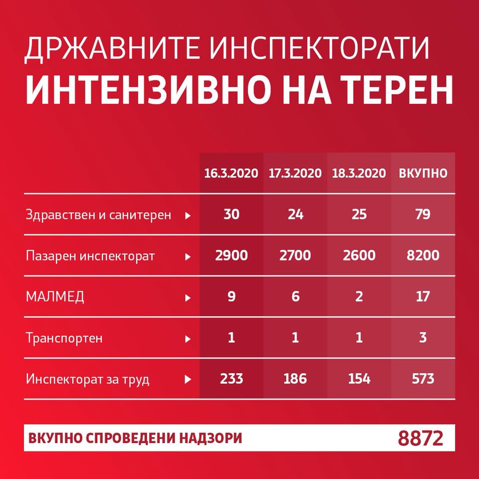 Државните инспектори продолжуваат интензивно да работат на терен, со цел да гарантираат целосно почитување на мерките на Владата за заштита од КОВИД-19.