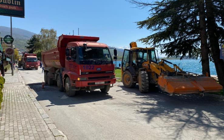 Екипите на ЈП „Нискоградба“ Охрид викендов извршија санирање на дефектот на канализационата линија на улица „Кеј Македонија“.