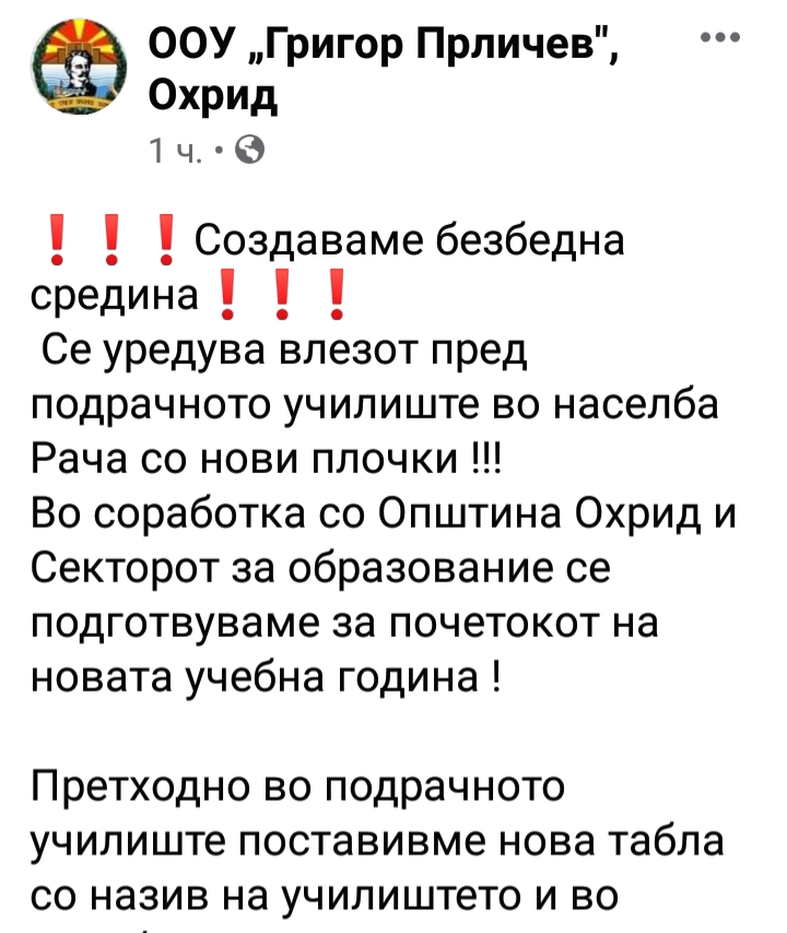 Во соработка со Општина Охрид и Секторот за образование се подготвуваме за почетокот на новата учебна година !