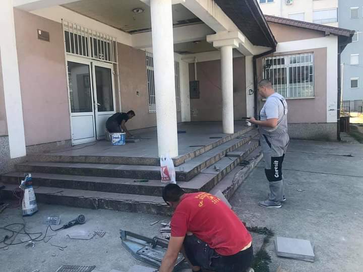 Се уредува влезот пред подрачното училиште во населба Рача со нови плочки !!!