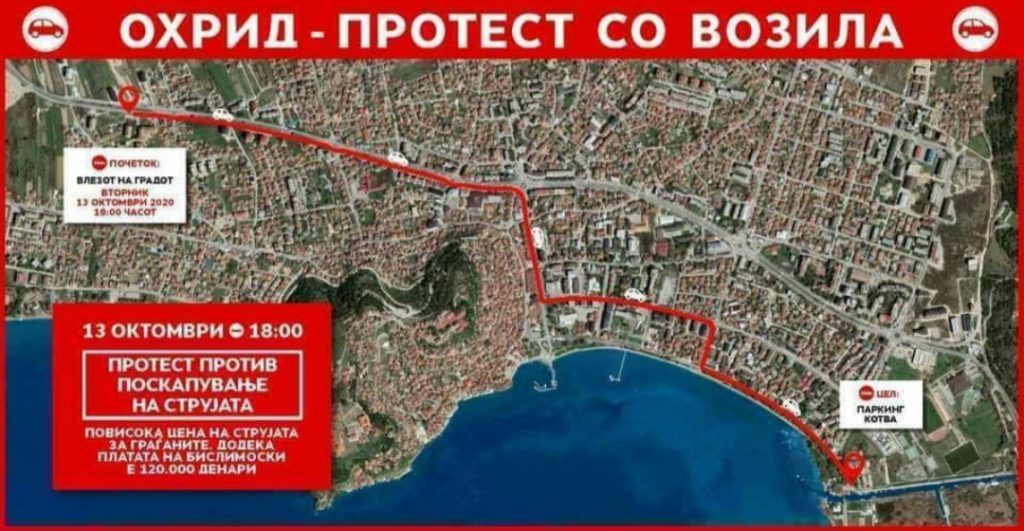 Опозициската ВМРО-ДПМНЕ денеска во 18 часот ќе одржи протести со возила во Скопје, Охрид и Прилеп против, како што информираат, поскапувањето на струјата.